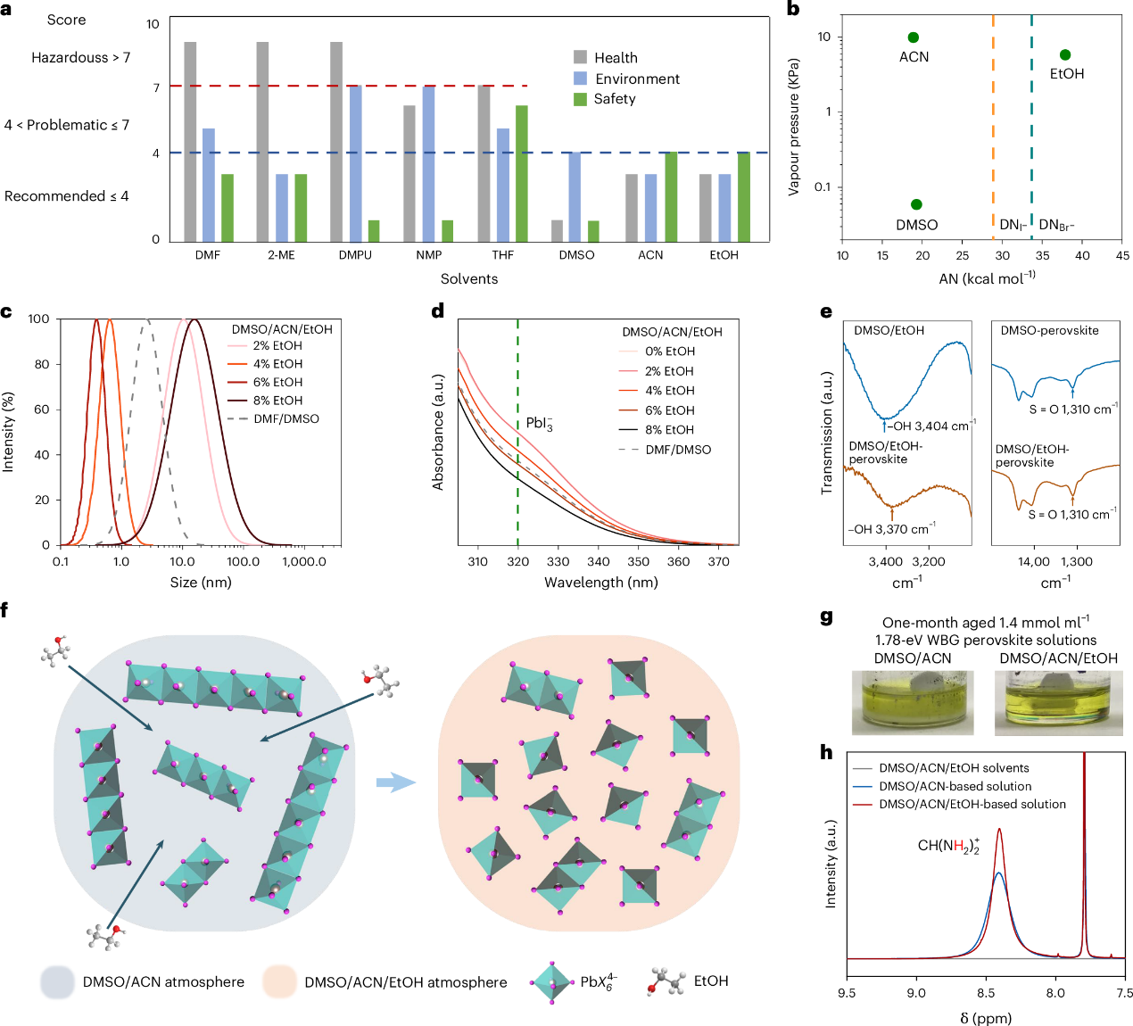 图1 掺入乙醇的钙钛矿前驱体溶液的溶剂和胶体性质 © 2024 Springer Nature Limited