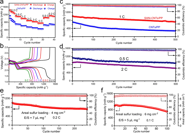 图5 使用SANi-CNTs/PP隔膜的电池电化学性能 © 2024 Springer Nature