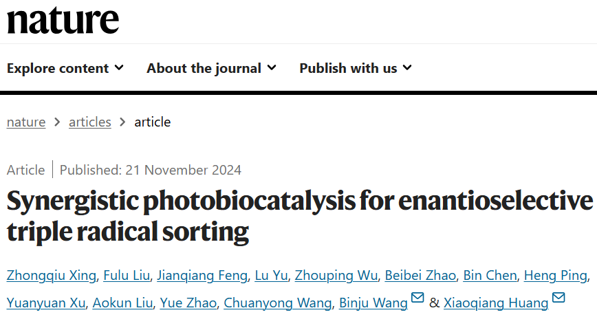 本研究方法在立体选择性方面表现出色,在33个实例中,有25个实例的对映体过量率达到了97%及以上。来自南京大学黄小强特聘研究员和厦门大学王斌举教授为共同通讯作者,南京大学副研究员刘福露和厦门大学化学化工学院博士生冯键强为共同第一作者,相关研究成果以“Synergistic photobiocatalysis for enantioselective triple radical sorting”为题目发表在期刊Nature上。通过深入的机理研究,揭示了双光子/酶系统如何精确控制参与转化的三种不同自由基,从而开启了新的酶反应性。