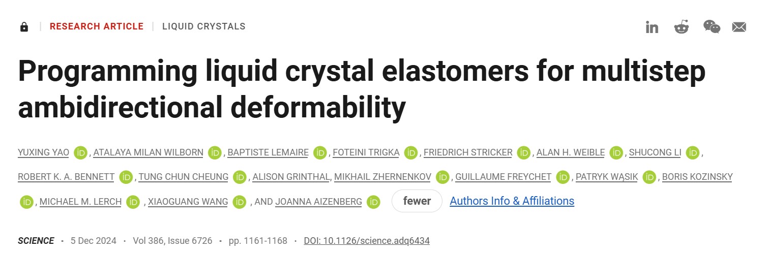 哈佛大学最新Science,双向变形的可编程液晶弹性体!
