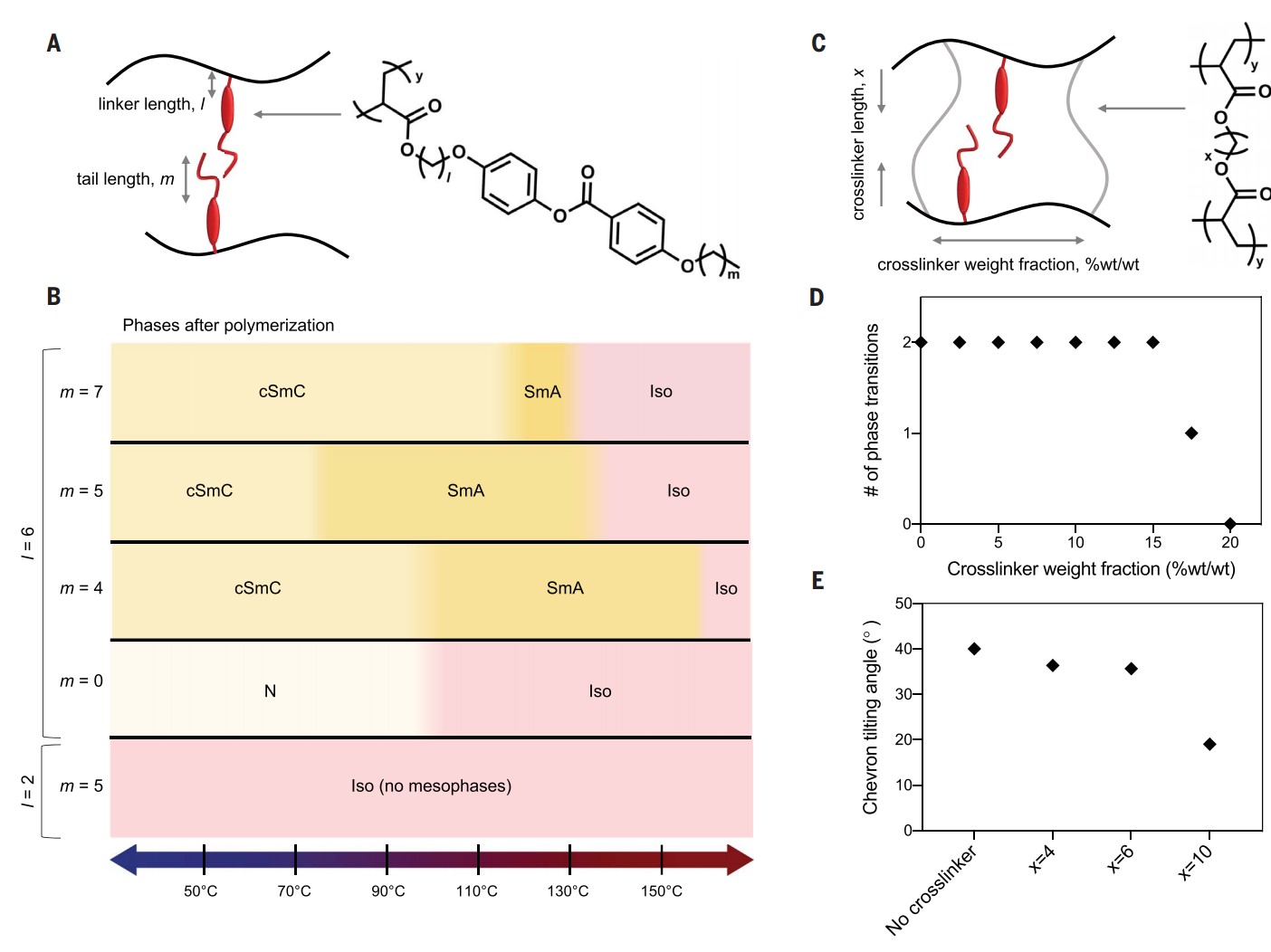 图2 介生结构和聚合结构对端对端LCE相行为的影响。