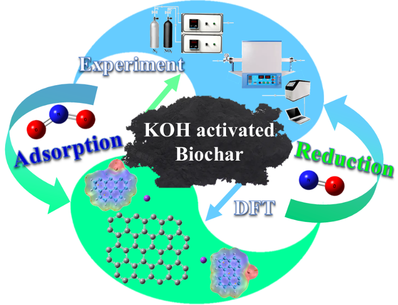 1、通过实验和理论计算研究了NO2在生物炭上的吸附和还原。