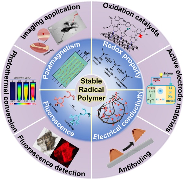 稳定自由基聚合物因其结构中含有丰富的自由基基团,表现出优异的氧化还原活性和固有的顺磁性并成为新一代电活性聚合物材料,在有机电极材料、半导体、磁性材料和量子信息技术等领域中表现出巨大的应用前景。稳定自由基聚合物结合了聚合物骨架的结构多样性和稳定自由基基团的独特性质,为其在合成、传感、光电子学、自旋电子学及生物体系等领域的应用开辟了新的方向,特别是在电活性功能材料领域展现出了巨大发展潜力。但目前对于稳定自由基聚合物的合成策略、官能团结构、电子结构和物理化学性质之间的关系还未完全明晰。