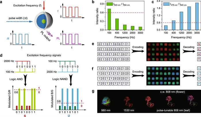 h,i) 样品变脉宽808 nm激发上转换发射光谱和时间依赖曲线;