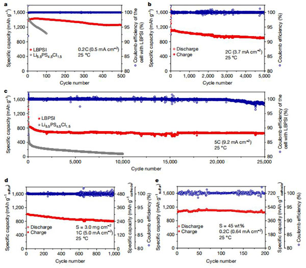 相关研究成果以“All-solid-state Li–S batteries with fast solid–solid sulfur reaction”为题发表在Nature上。