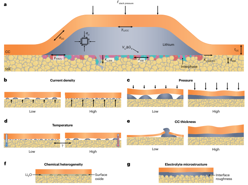 图2 影响无阳极固态电池中锂初始沉积的因素。© 2025 Springer Nature Limited