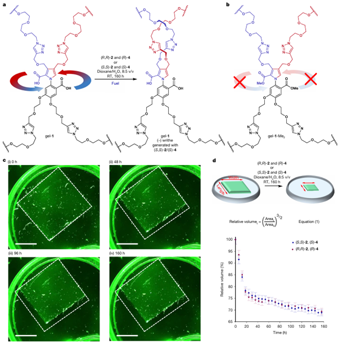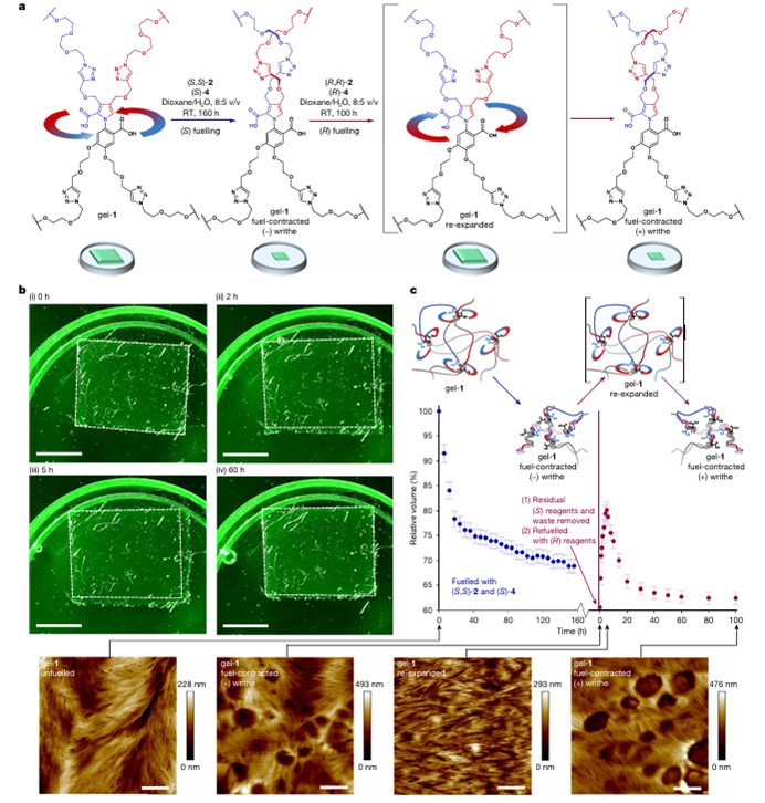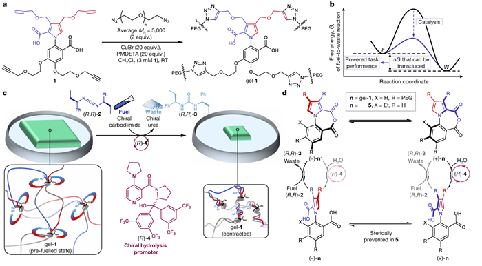 图1 一种共价嵌入化学燃料分子马达的聚合物凝胶的收缩;© Springer Nature Limited 2025