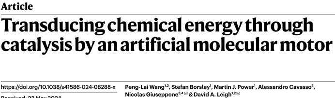 文献链接:Transducing chemical energy through catalysis by an artificial molecular motor,2025,https://doi.org/10.1038/s41586-024-08288-x)