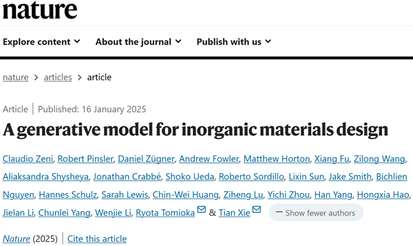 原文详情: A generative model for inorganic materials design (Nature 2025, DOI: 10.1038/s41586-025-08628-5)