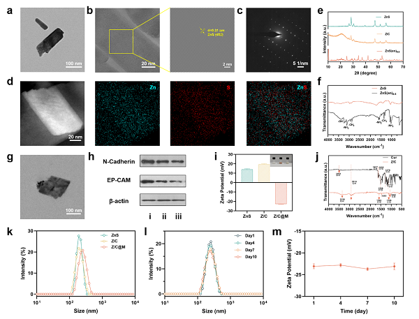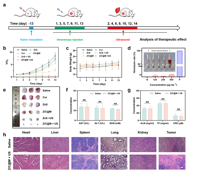 1. 得益于肿瘤细胞赋予的同源靶向特性,Z/C@M在肿瘤区域特异性蓄积。在超声刺激下,Z/C@M通过压电催化作用分解水产生氢气,从而减少肿瘤间质液体积并降低肿瘤间质压力,促进Z/C@M向肿瘤深处渗透。