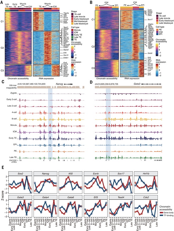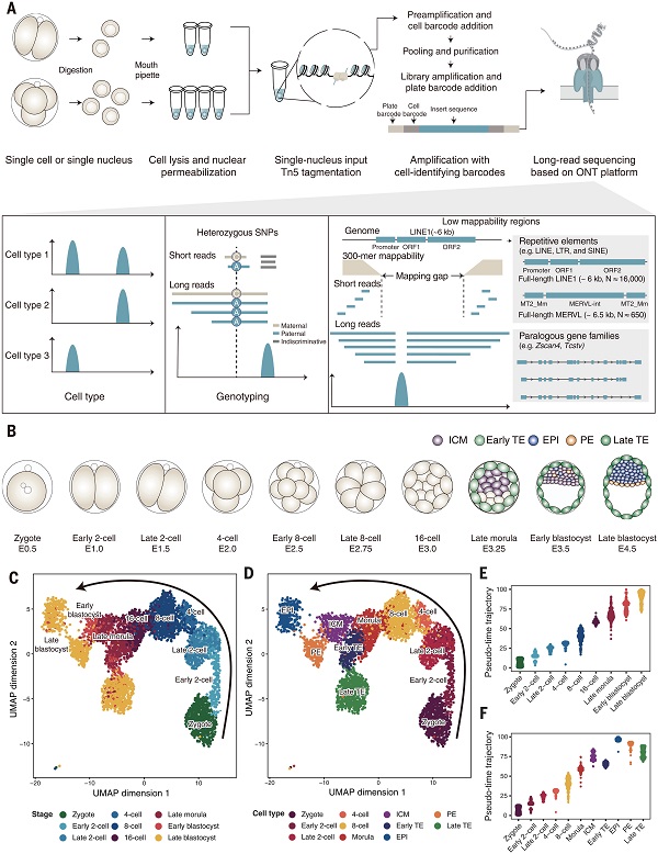 图1 scNanoATAC-seq2分析小鼠着床前胚胎染色质可及性 © 2025 AAAS