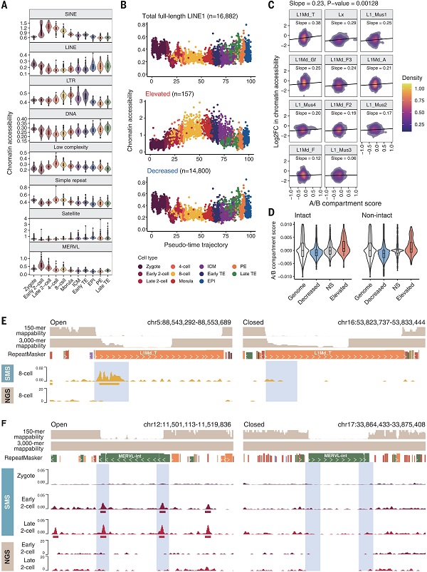 图5 小鼠植入前发育过程中重复元件染色质可及性的动力学 © 2025 AAAS