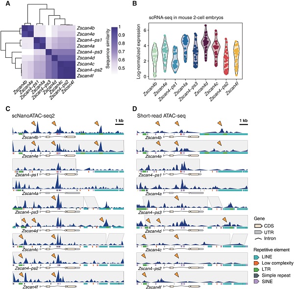 图6 Zscan4同源物在小鼠晚期二细胞胚胎中的染色质可及性和RNA表达 © 2025 AAAS