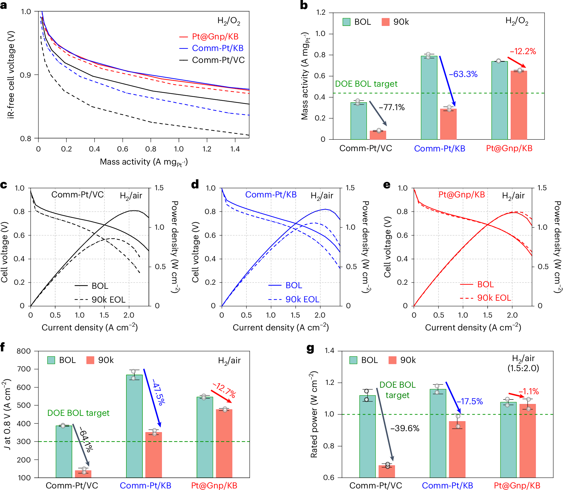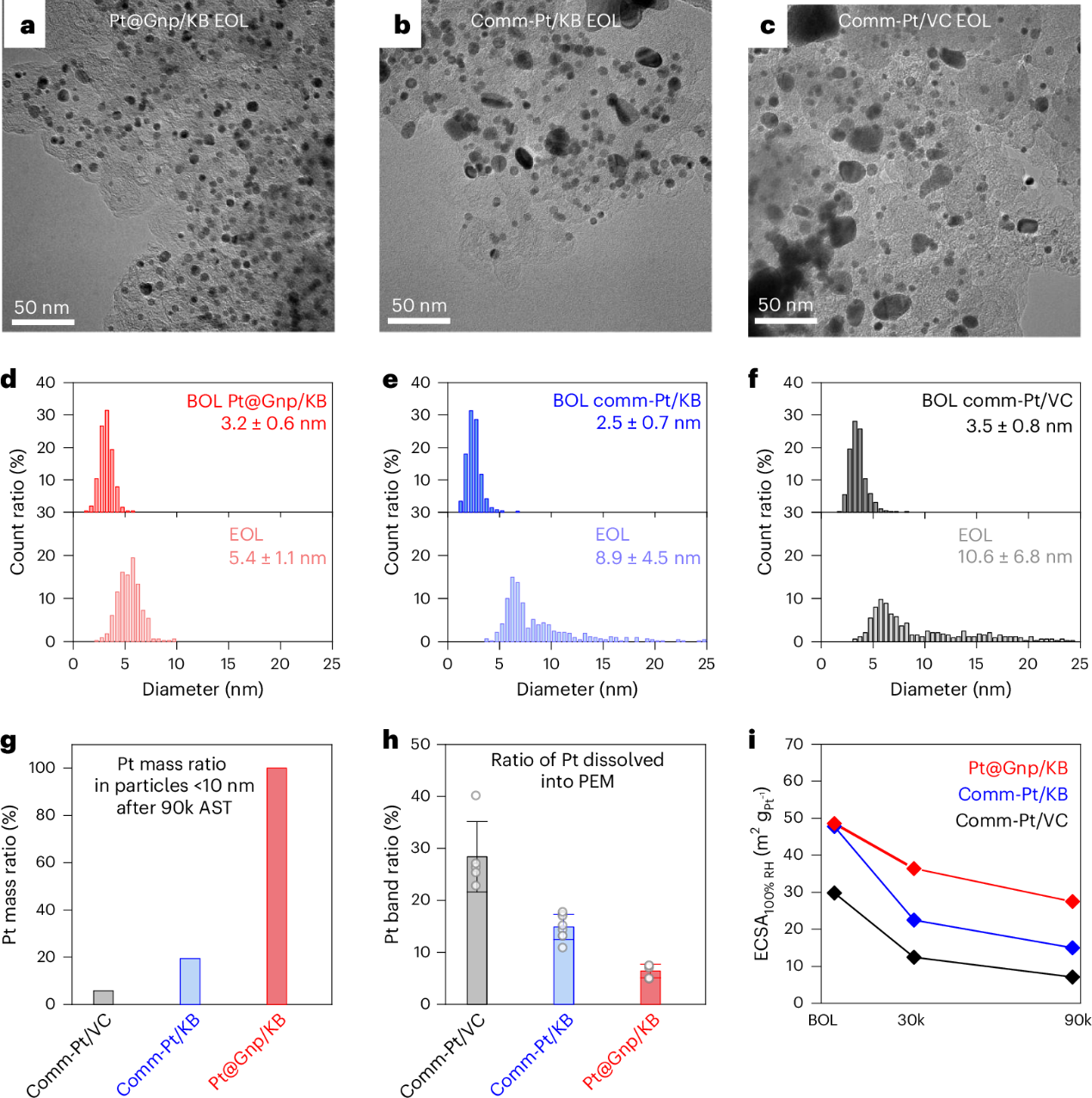 图2 comm-Pt/VC、comm-Pt/KB及Pt@Gnp/KB催化剂的燃料电池性能评价© 2025 Springer Nature