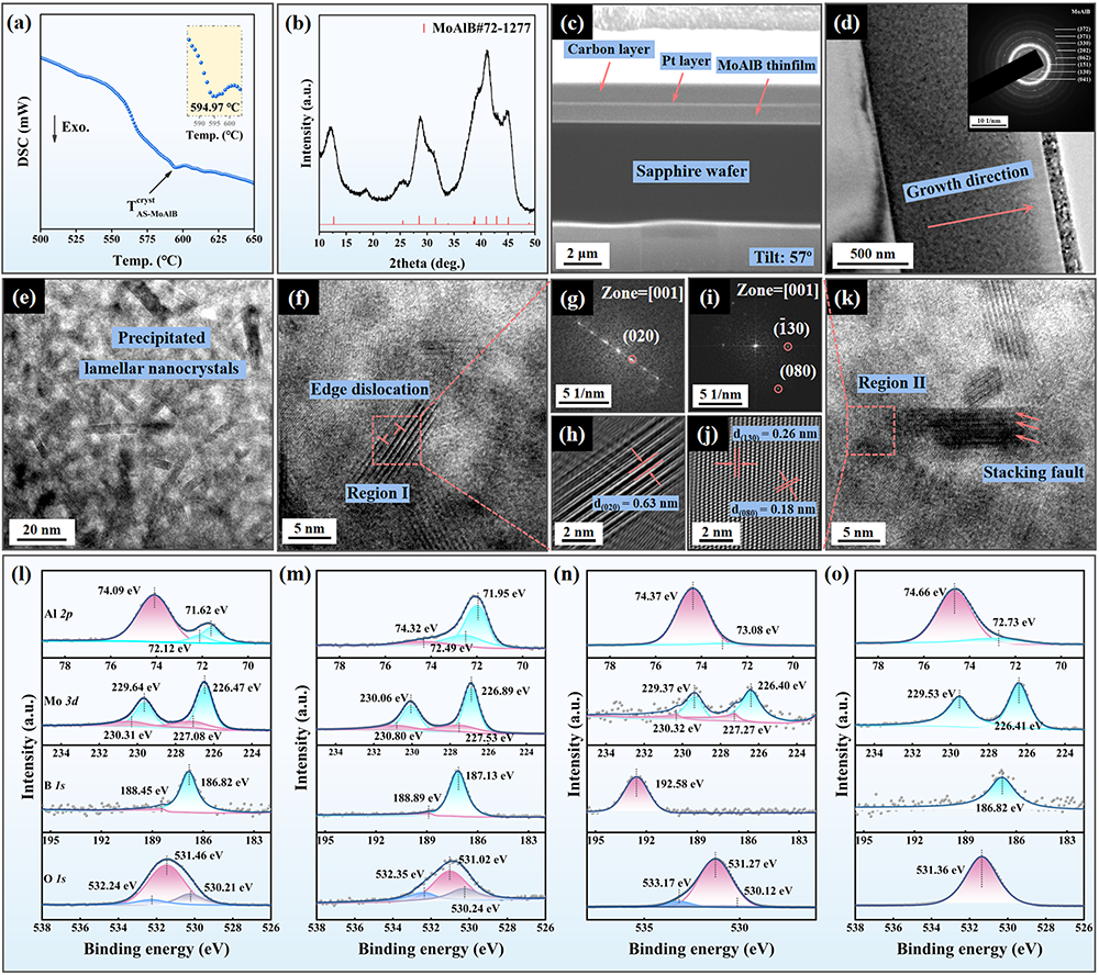 图2 (a-k) ACCS-MoAlB微观结构,以及(l-o) AS-/ACCS-MoAlB样品表面钝化层的组成与发展.