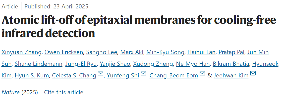 原文详情:Zhang, X., Ericksen, O., Lee, S. et al. Atomic lift-off of epitaxial membranes for cooling-free infrared detection. Nature (2025). https://doi.org/10.1038/s41586-025-08874-7