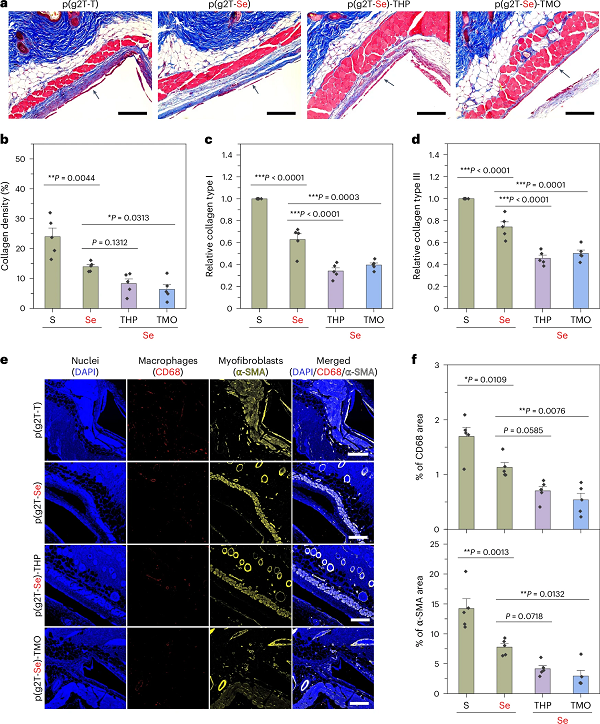 图2 通过免疫兼容设计的聚合物薄膜可减少胶原蛋白沉积和免疫细胞群 © 2025 Springer Nature