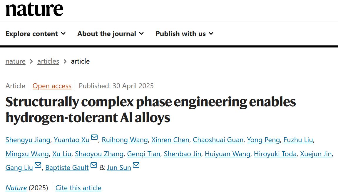 西安交通大学孙军院士、刘刚教授团队联合上海交通大学材料学院金学军教授和许元涛博士团队、德国马普可再生材料研究所B. Gault教授团队、西安理工王瑞红副教授等国内外相关团队,通过在Al-Mg合金中添加Sc,结合两步热处理,实现了高密度分布的Al₃Sc纳米颗粒和原位形成的核壳结构Al₃(Mg, Sc)₂/Al₃Sc纳米相。这些纳米相具有优异的氢捕获能力。Al₃Sc纳米颗粒(尺寸>10 nm)表面通过异质形核形成Samson结构的Al₃(Mg, Sc)₂相,其尺寸依赖性源于Al₃Sc纳米沉淀相的非共格性,导致镁局部偏析并触发Al₃(Mg, Sc)₂相的形成。Al-Mg-Sc合金的双纳米沉淀相分布使其强度较无Sc合金提高约40%,抗氢脆能力提升近五倍,并在氢含量高达7 ppmw时仍保持创纪录的均匀延伸率。该策略可推广至其他Al-Mg基合金(如Al-Mg-Ti-Zr、Al-Mg-Cu-Sc和Al-Mg-Zn-Sc合金),为高强铝合金的氢耐受性设计提供了新思路,并具备大规模工业化生产的潜力。相关成果以“Structurally complex phase engineering enables hydrogen-tolerant Al alloys”为题,发表在最新一期的Nature上。