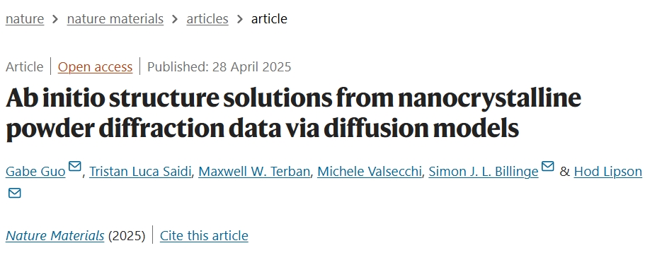 哥伦比亚大学Hod Lipson、Simon J. L. Billinge、Gabe Guo等人提出了基于扩散过程生成机器学习模型——PXRDnet,使用45229个已知结构进行训练,能够成功解析小至10 A的模拟纳米晶体,涵盖200种不同对称性和复杂性的材料,包括来自所有七个晶系结构。他们研究成果解决了纳米材料结构解析的长期难题,为材料科学提供了高效工具,并有望推动纳米技术、能源、医药等领域的创新应用。研究成果以“Ab initio structure solutions from nanocrystalline powder diffraction data via diffusion models”为题发表于Nature Materials。