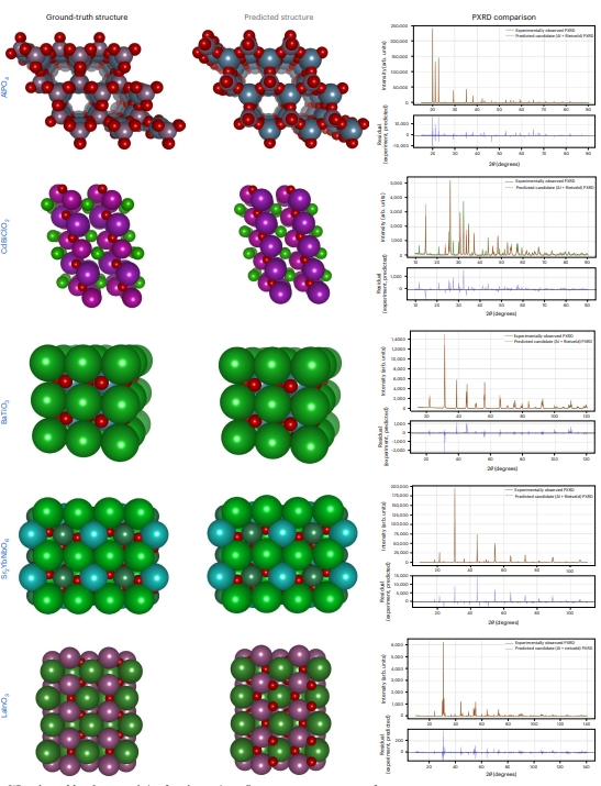模型不仅适用于模拟数据,还能处理真实实验中的噪声衍射数据(如来自国际晶体学联合会数据库的案例),并通过Rietveld精修进一步优化候选结构,验证了其实际应用潜力。