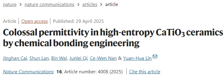 近日,清华大学材料学院林元华团队通过高熵设计与化学键工程的协同作用,首次在CaTiO₃基陶瓷中实现了巨介电常数、低损耗和优异温度稳定性的综合性能突破,在高熵钛酸钙陶瓷中同时实现了2.37×10^5的介电常数、0.005的低损耗以及-50至250°C范围内良好的温度稳定性(<± 15%),为高性能介电材料的开发提供了创新性解决方案。研究成果以Colossal permittivity in high-entropy CaTiO3 ceramics by chemical bonding engineering为题发表于Nature Communications。