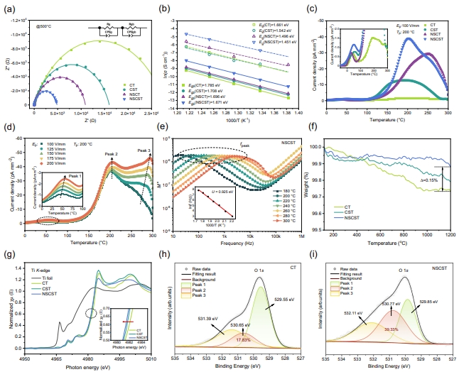 结合TSDC、XPS、XANES等表征,明确氧空位和Ti³⁺缺陷的主导作用,提出“缺陷偶极子极化主导”的介电增强机制。