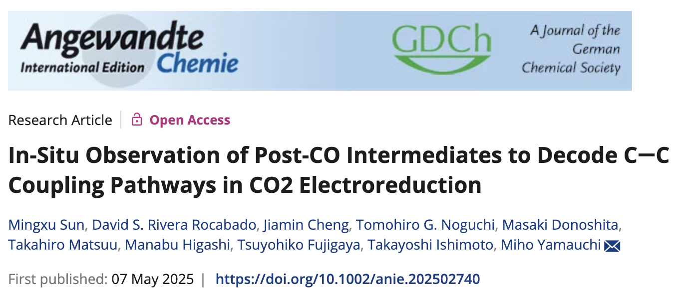 4.Sun, Mingxu, et al. In‐Situ Observation of Post‐CO Intermediates to Decode C–C Coupling Pathways in CO2 Electroreduction. Angewandte Chemie International Edition 2025, e202502740. DOI: 10.1002/anie.202502740.