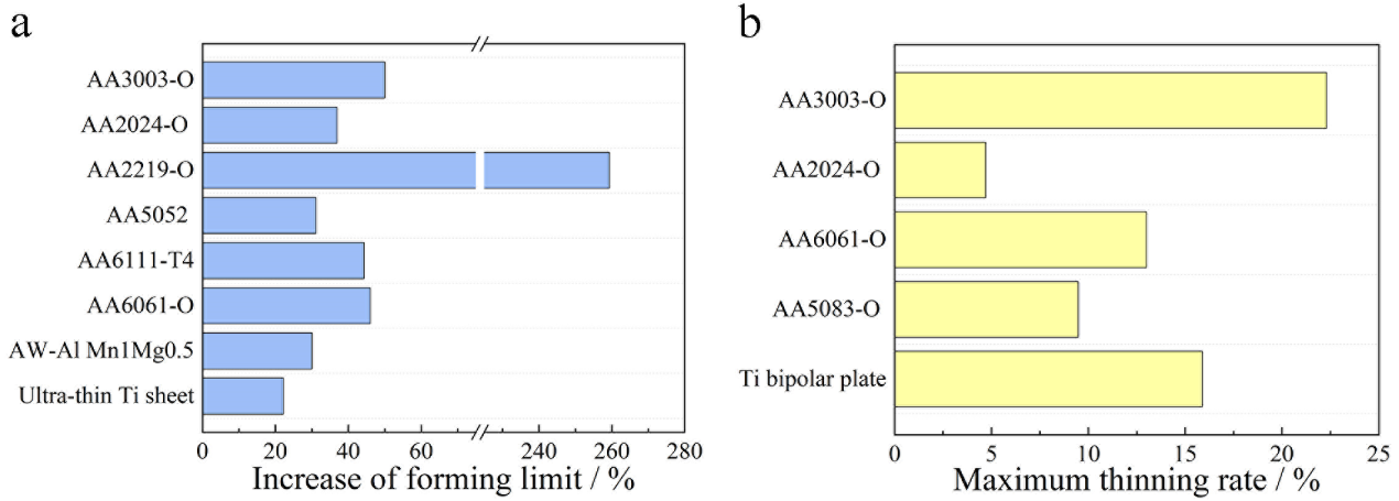 电磁处理提升金属材料性能的优势,也体现在材料制备、成形和加工过程中。在材料制备方面,电磁场辅助烧结技术可利用电磁场加热并促进粉末材料致密化。在材料加工方面,电磁处理技术已成功拓展至切削、磨削、钻孔、焊接、烧结、涂层、塑性成形等多种工艺,如图9。在材料成形方面,电磁成形技术在保持成形精度的同时可以大幅提高成形极限,如图10。此外,电磁处理在增材制造中的应用可改善熔池内的流动行为和传热过程,可提升冶金质量与凝固微结构的控制,减少传统增材制造过程中常见的诸如气孔、裂纹和元素偏析等缺陷。它还能有效地降低残余应力,提高残余应力分布均匀性,如图11。电磁处理技术已在材料制备、材料加工、材料成形、增材制造等领域实现应用。