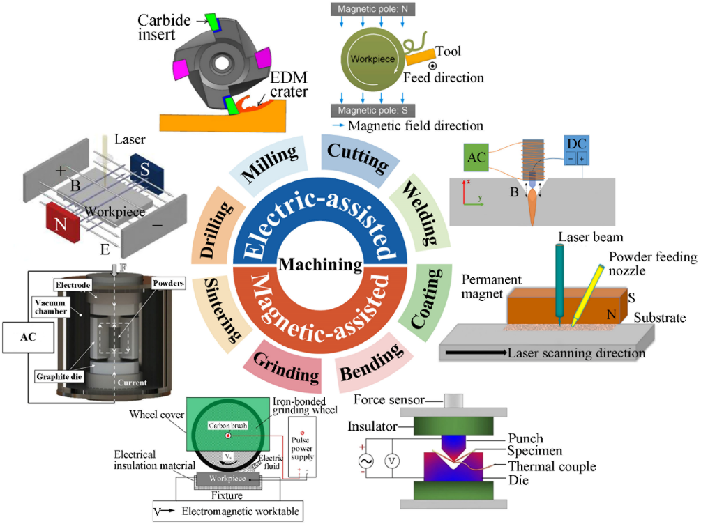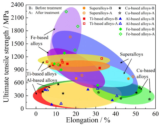 电磁处理对金属材料力学性能具有显著影响。对于非铁磁性材料(如钛合金、铝合金、镁合金和铜合金),通常采用电流处理来优化其性能。相比之下,对于铁磁性材料(如铁合金和镍基合金),磁场处理在性能优化方面更为有效。电流密度、磁场强度、磁场方向和处理持续时间是通过电磁处理影响金属材料性能的主要因素。
