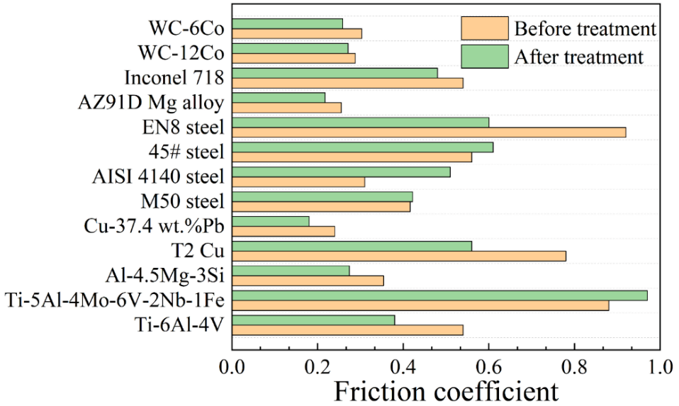 耐磨性的提高归因于更细小碳化物的形成、更低的摩擦系数以及自润滑膜的产生。过高的电流密度可能会导致粘着磨损,破坏氧化膜的稳定性。当磁场方向垂直于摩擦表面时,它会促进氧化层的致密化,减少磨粒磨损。当磁场平行于摩擦方向时,会加剧磨屑的横向扩散,导致形成多孔氧化膜。
