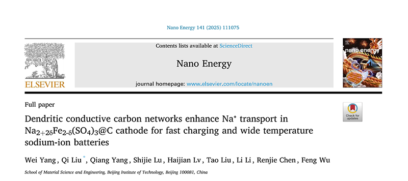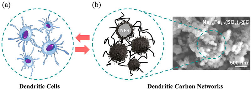 文章信息:Dendritic Conductive Carbon Networks Enhance Na⁺ Transport in Na2+2δFe2-δ(SO4)3@C Cathode for Fast Charging and Wide Temperature Sodium-ion Batteries