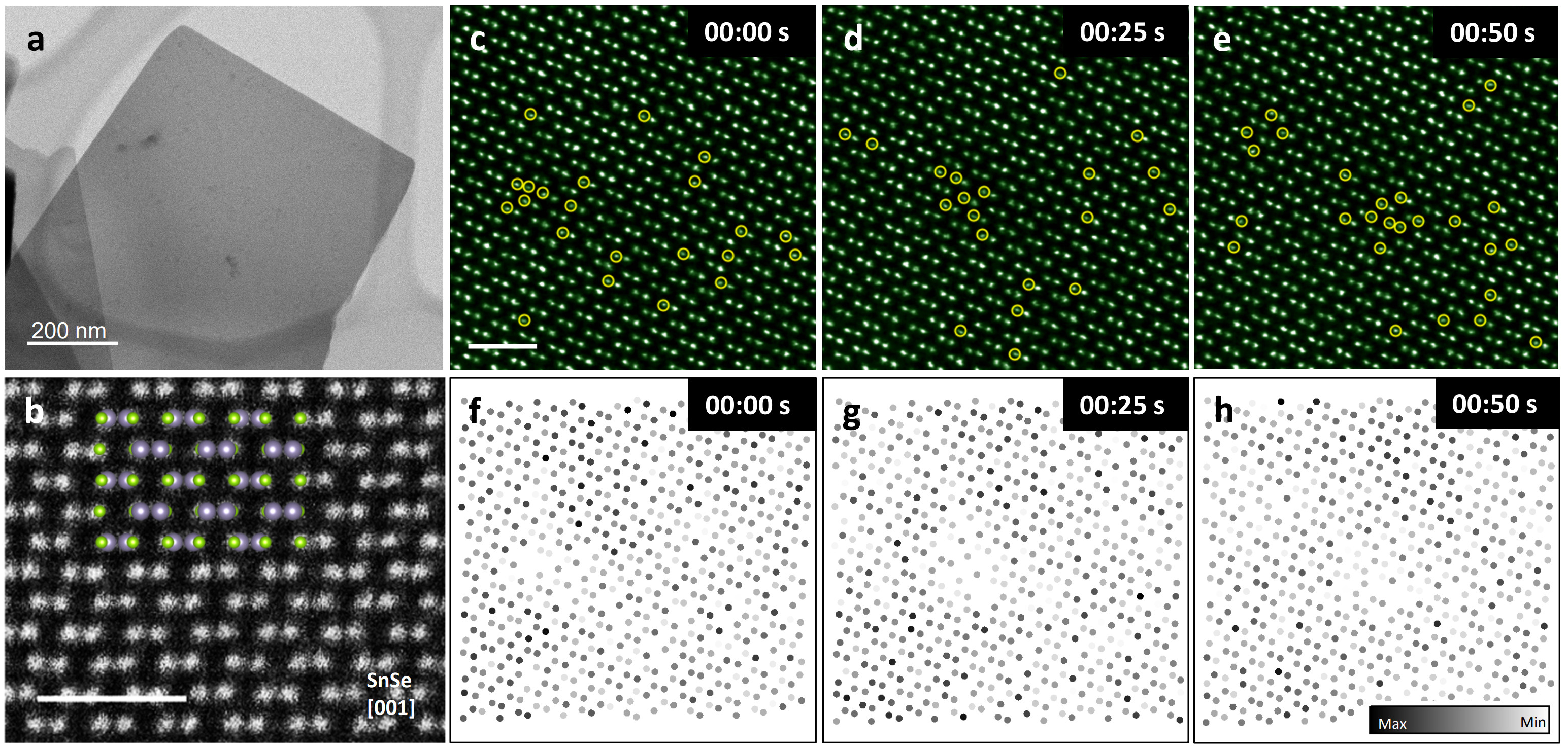 图2. 原位球差电镜表征Sn空位在常温下的动态迁移