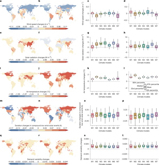 图1 未来气候变化下关键气候变量及其对风光出力与电力需求的影响。© 2025 Nature