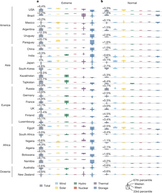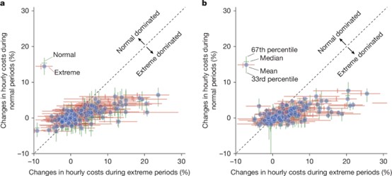 图2:未来气候变化下极端与正常时段每小时成本变化。© 2025 Nature