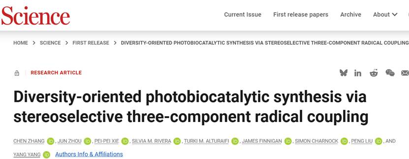 Chen Zhang et al. ,Diversity-oriented photobiocatalytic synthesis via stereoselective three-component radical coupling.Science0,eadx2935DOI:10.1126/science.adx2935