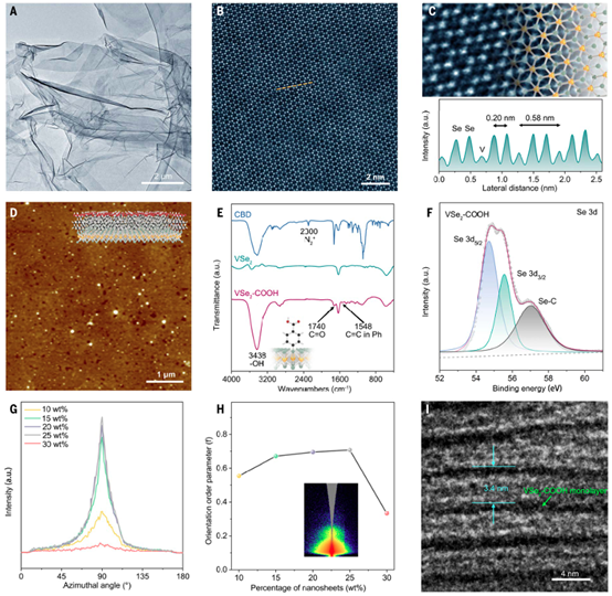 图2 VSe2单层、VSe2-COOH单层和PVDF-VSe2-COOH超晶格的结构表征。© 2025 Science