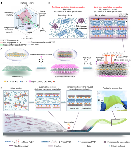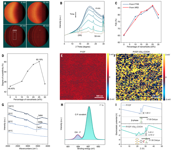 图3 PVDF-VSe2-COOH超晶格的结晶特性和界面相互作用的表征。© 2025 Science