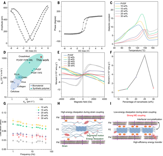 1. 通过铁磁性无机单层与铁电聚合物之间的界面共结晶开发了坚固的磁电(ME)纳米复合材料。