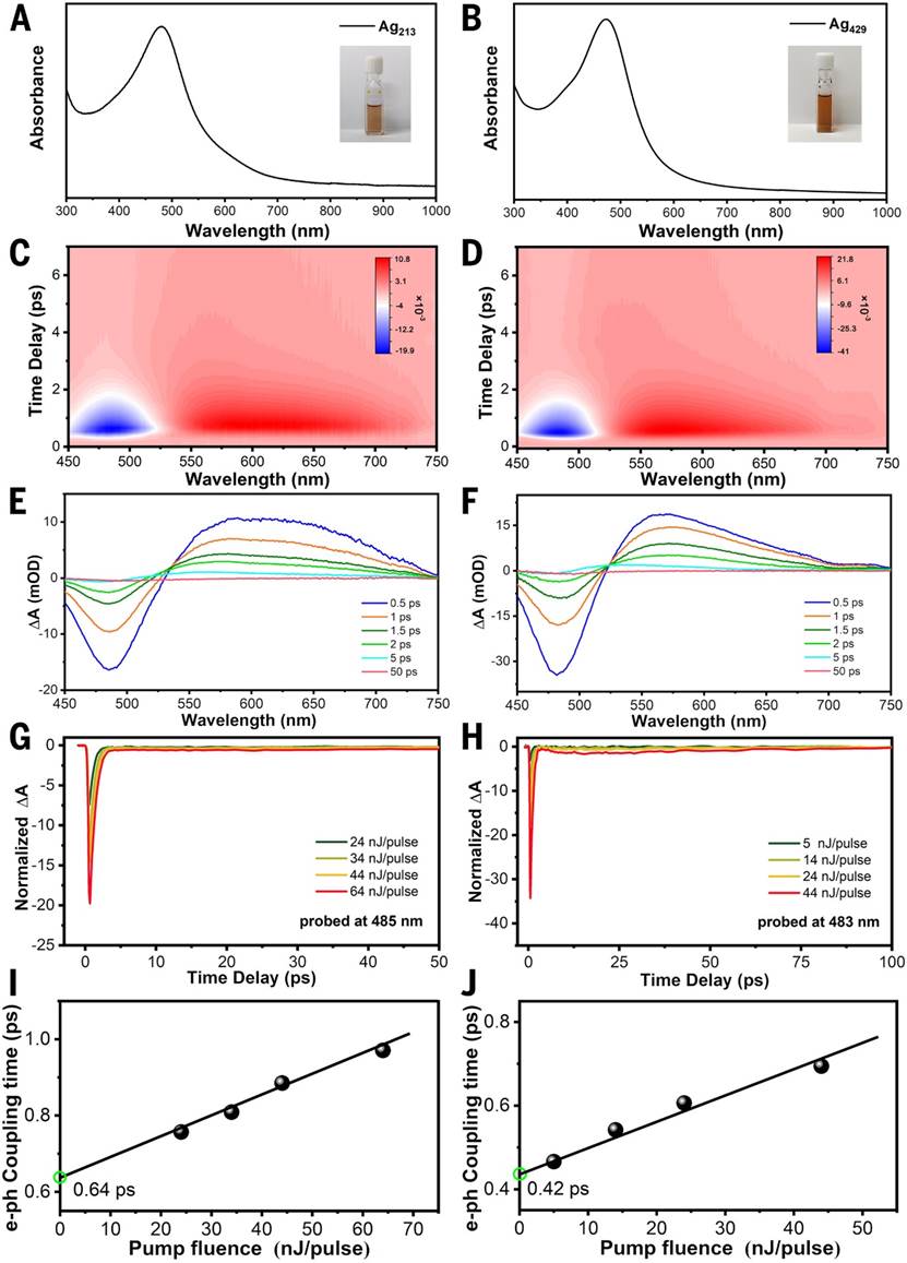图5 Ag₂₁₃ 和 Ag₄₂₉ 的稳态吸收和激发态动力学行为© 2025 Science