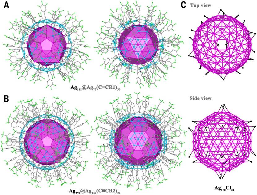 图1 通过单晶X射线衍射解析的两种银二十面体纳米团簇的分子结构© 2025 Science