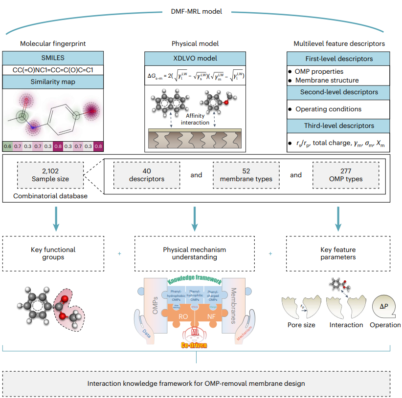 2. DMF-MRL模型将277种污染物、52种膜材料、2102组实验数据输入其中,并引入了两大物理机制:尺寸筛分和电荷排斥效应。同时,它还能量化分子与膜之间的相互作用能量。