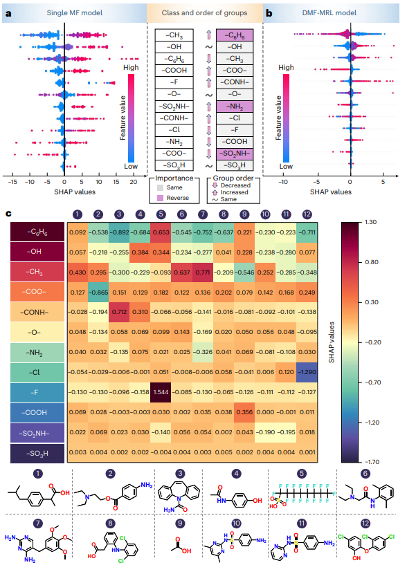图2 12种官能团的重要性分析,揭示苯基对去除率的负面作用。© 2025 Nature