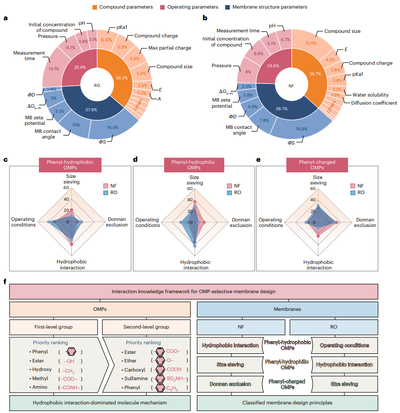 图4 互动知识框架,展示不同类别污染物在NF与RO膜中的去除机制。© 2025 Nature