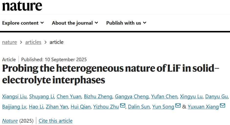 原文信息:Liu, X., Li, S., Yuan, C. et al. Probing the heterogeneous nature of LiF in solid–electrolyte interphases. Nature (2025).