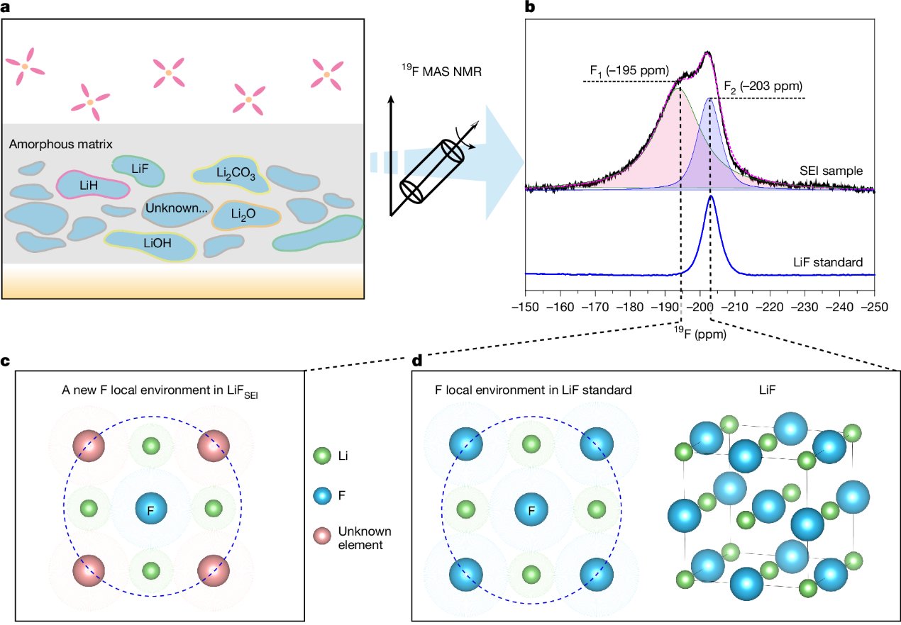 图1. SEI的¹⁹F魔角旋转(MAS)NMR光谱© 2025 Springer Nature Limited
