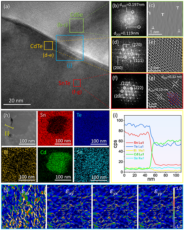 图6展示SnTe/CdTe/CdSe三相共存的微观结构,其有效散射声子并显著降低热导率。