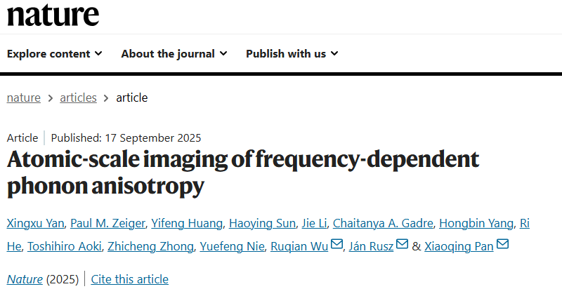 原文信息:Yan, X., Zeiger, P.M., Huang, Y. et al. Atomic-scale imaging of frequency-dependent phonon anisotropy. Nature (2025).