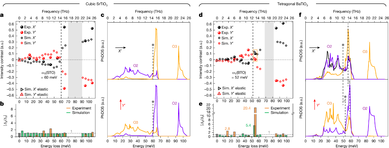 图4. 不同能量区间内STO与BTO中氧原子振动各向异性的定量分析 © 2025 Springer Nature Limited