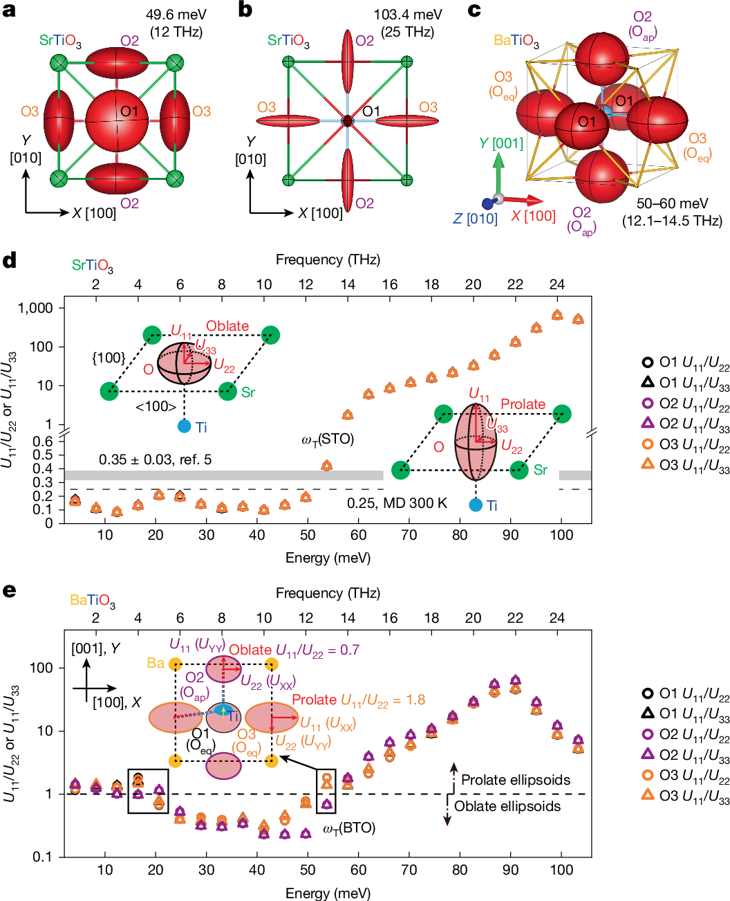 图5. STO与BTO中氧原子的频率依赖热椭球模拟 © 2025 Springer Nature Limited