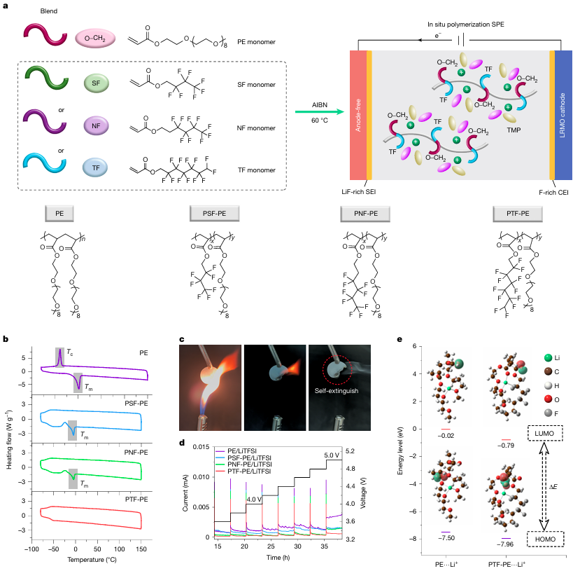 图3 氟聚醚基固体聚合物电解质(SPEs)的特性表征。© 2025 Nature